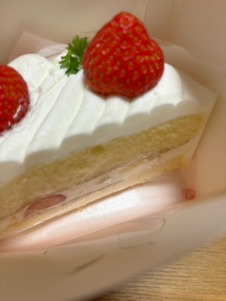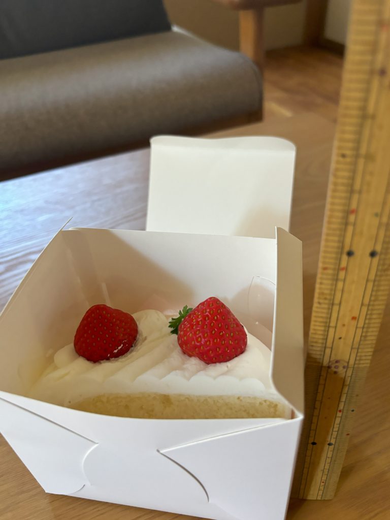 (松江市)洋菓子店クロードの自売機で買ってみた 松江 X Facebook はてブ Pocket LINE コピー 2024.07.29 ずーっと気になっていたクロードの自販機に行ってみました。 購入したのはお楽しみボックス500円 箱の大きさはだいたい9cm*12cm*11cm 賞味期限は当日です さてさて中身はジャーン イチゴのショートケーキでした!!直径12cmホールのハーフサイズ お得なケーキこの後美味しくいただきました。
